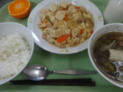 本日は秋田県の郷土料理、きりたんぽを汁物として提供しました。