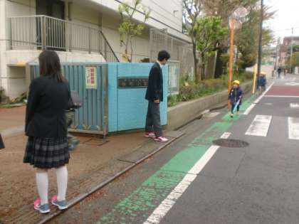 本日は生徒会本部役員の担当でした。これから毎月ごとに1,2年生の各学級が出身小学校に行って挨拶運動を行います。