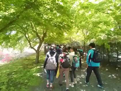富士山レーダードームからふじさんミュージアムへ移動中です。緑が美しい!これからこのミュージアムを見学して、お昼になります。クラス