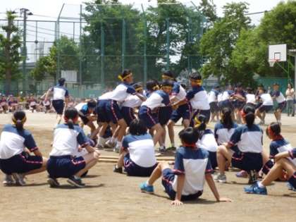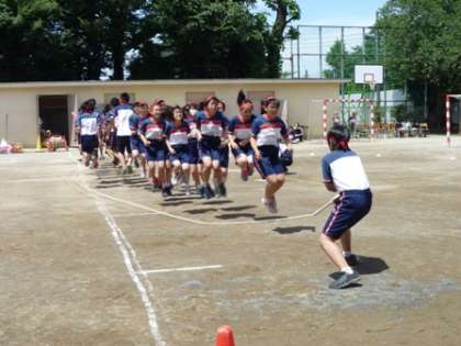 6日の体育祭を前に、全校で体育祭予行練習がありました。仮設校舎に引越しをして初めての体育祭、今までより狭くなった校庭での体育祭です。