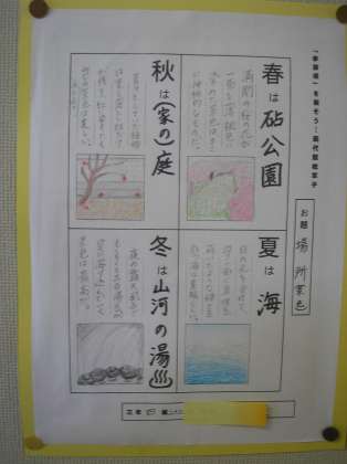 3年生の国語授業での作品です。多くの秀作が廊下に掲示されています。