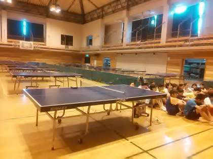 卓球部です。コーチ、先生に朝の挨拶をして、これから練習が始まります!