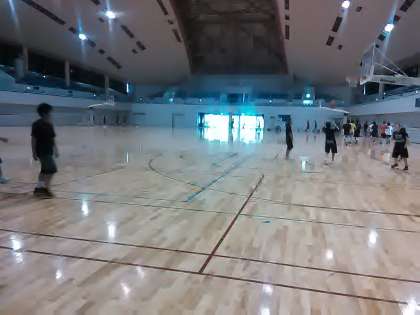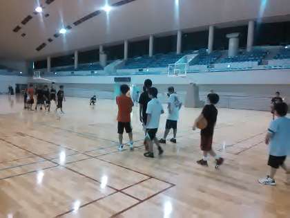 今日のバスケット部の練習会場清原体育館は、県下随一の設備だそうで、広々とした空間が広がっています。生徒達も昨日より体も暑さに慣れたようで、頑張って練習しています。