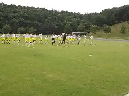 サッカー部は、地元の田野中学校と練習試合です。只今ウォーミングアップ中です。