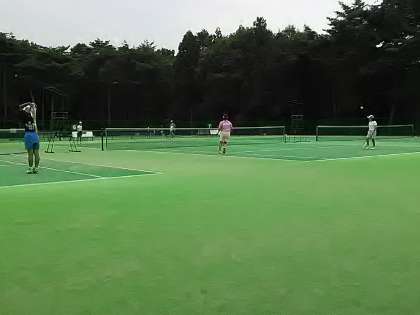 テニス部女子は、ストローク(乱打)練習をしています。顧問の先生も中に入って奮闘しています。