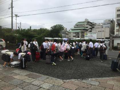 宿舎の前で集合写真を撮り、8:40頃に出発しました。