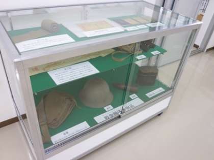 深沢中学校では9/10(木)から9/24(木)までの2週間、2階廊下に展示しています。生徒たちも時々足を止めて、資料を見ているようです。戦後70年、今の自分に何ができるのか、一人一人が考えるきっかけとなるとよいですね。