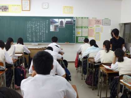 教科「日本語」の授業研究を行いました。分野は3年生の「日本文化」です。今月修学旅行で訪れた法隆寺について思い出すところから授業は始まりました。授業を通して、日本の生活が自然の特徴を生かし、自然を暮らしに取り入れる工夫や演出がされていることに、生徒たちはあらためて気付かされたようでした。