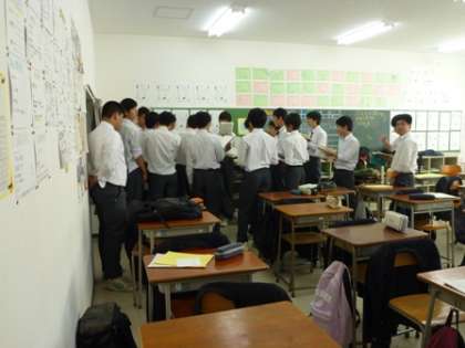 放課後になると、教室や体育館、廊下から歌声が響いてきます。パートごとに集まって音取りをしているクラス、教室後ろのロッカーと椅子を利用してひな段を作り、合唱に取り組んでいるクラス等、取り組み方は様々ですが、みんな真剣に取り組んでいます。