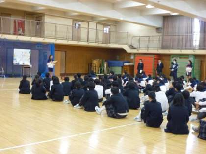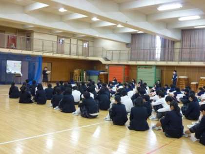 今日の2年生学年朝礼は、運動部の部長が、新人戦の結果報告とこれからの取り組みに対する豊富について、学年のみんなの前で話をしました。今日の発表は、バレーボール部、ソフトテニス部女子、バスケットボール部男子、卓球部女子の4部活でした。それぞれの部長が語った勝ち進んだうれしさと敗退した悔しさ、これからの意気込みに、思わず聞いていた仲間からは拍手がおこりました。