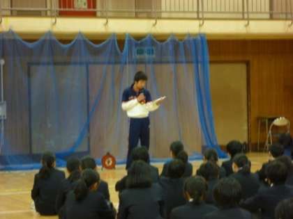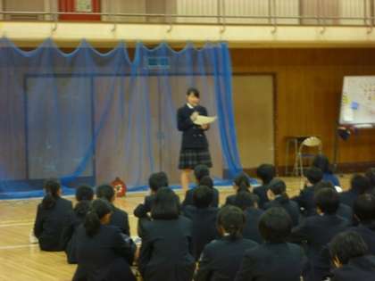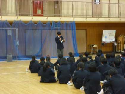 本日、2年生の学年集会がありました。男子テニス部、女子バスケットボール部、男子卓球部、サッカー部の部長が新人戦の結果を報告し、今後の抱負を語りました。