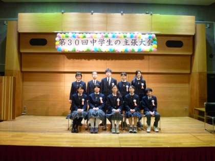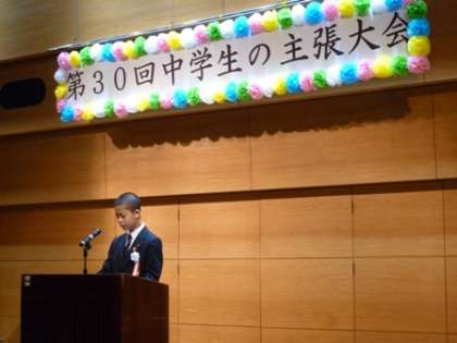 本日、第30回中学生の主張大会が深沢区民センターホールで開催されました。深中からは、1年生3名、2年生2名が、自分の『夢』や『思い』をたくさんの方々の前で発表しました。当日はどうしても都合がつないけれど、「自分の思いをぜひ話したい!」という2年生は、事前に主張を録音し、音声が会場に流されました。
