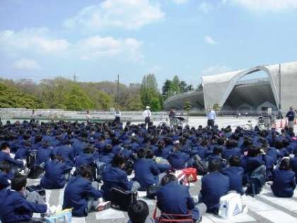 生徒総会終了後、クラスごとに駒沢公園へ向かい、写生会に取り組みました。(写真下)