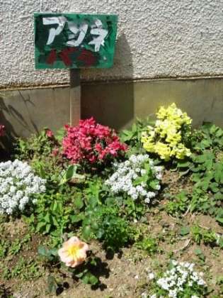 校庭では、「アンネのバラ」が咲きました。ベルギーの園芸家が品種改良して、アンネの父オットー・フランクに捧げたもので、「アンネの形見」と名付けられました。