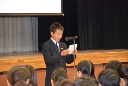 本日1校時、新入生歓迎式を行いました。1年生に中学校生活を知ってもらうために、勉強のことや委員会、学校行事など説明しました。生徒会の生徒が考えた深中クイズは、とても盛り上がりました。先輩から新入生へ歓迎の花束を渡し、1年生からは立派なお礼のことばがありました。