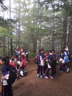 三つ峠の登山が始まりました!あいにくの雨ですが、みな頑張って登っています!