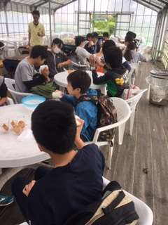 先ほどと同じく、富士ミルクランドの体験学習です!次はバター作り体験を行いました!