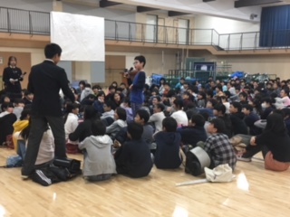 学び舎小学校6年生を招いて、生徒会主催の学校見学会が行われました。校長先生のお話、校舎内見学、生徒会が中心となって作成した「深中スクールライフ」のスライドを使っての学校説明と続きます。質問コーナーでは、小学生から沢山の質問が出て、和やかな雰囲気で会は進みました。