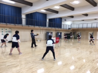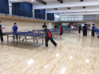 年が明けて冬季休業中ですが、部活動は活発に行われています。11月から使用可能になった格技室では、卓球部とバレー部が練習していました。バレー部はネットを張れないので、紐をネットに見立て、工夫して練習しています。