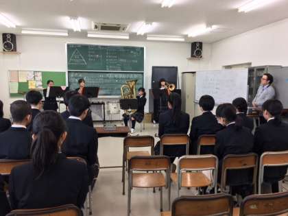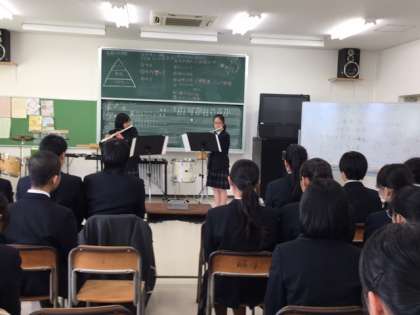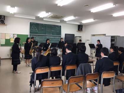 土曜授業の午後の時間を使って、吹奏楽部がミニコンサートを行っています。