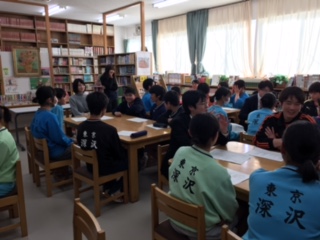 卒業生のお話が終わり、しょうぐるに分かれてグループディスカッションが始まりました。先輩の中学生時代の話、夢についての話で各グループ盛り上がっています。