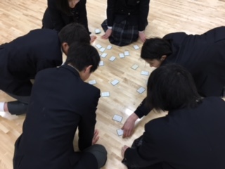 札を読み進め、大分雰囲気も盛り上がってきました。読み手は2年生担当の先生方が交代で行っています。