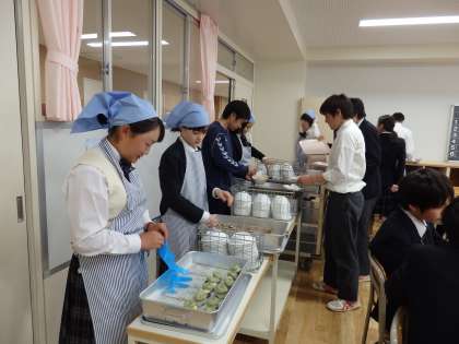 新校舎になって給食室もでき、初めての自校式の給食です。とても美味しかったです。