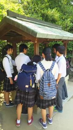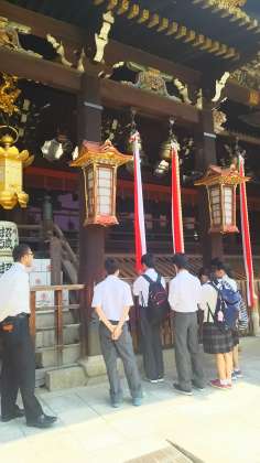 北野天満宮の様子です。修学旅行生で賑わっています。