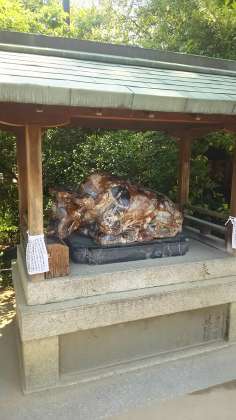なで牛さんは、みんなに撫でられて表面がツルツルになっていました。運転手さん情報によると、裏側をさわると石本来の手触りを楽しむことができるそうです。