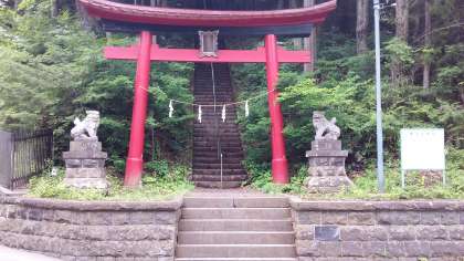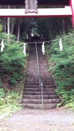 オリエンテーリングのチェックポイントのひとつ。魔王天神社です。生徒たちは自分の足で階段が何段あるかを数えます。
