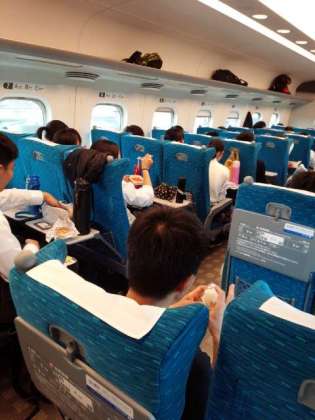 新幹線は、名古屋を過ぎました。これから、お弁当の時間となります。早くから準備していただいた保護者の皆さまに感謝して、いただきます!