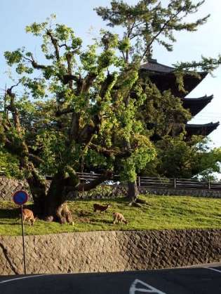 2日目の朝も、とても爽やかな晴天です。興福寺五重塔、さるさわ池の様子です。