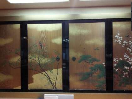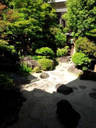 写真は、500年の歴史を誇る宿舎の中庭と、フロントの様子です。