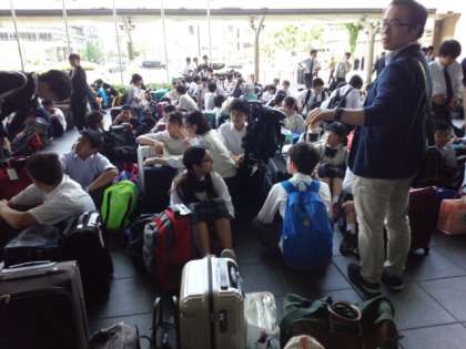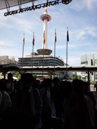 全員無事に、京都駅集合が完了しました。ホームに移動し、新幹線に乗り込むために、待機しています。