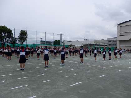 開会式の予行練習の様子です。(入場行進と準備体操)