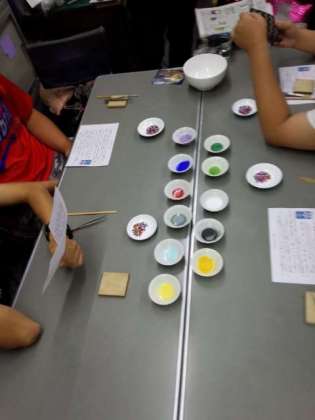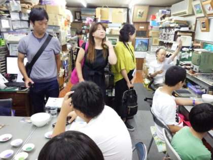 本日、予定通りに、七宝焼き体験学習の坂森七宝さんに到着しました。制作する作品を選んでいます。