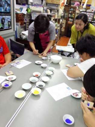 真剣な作業が続きます。青が人気のテーブルと、全員違った色選択のテーブルが、、、。