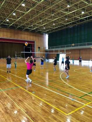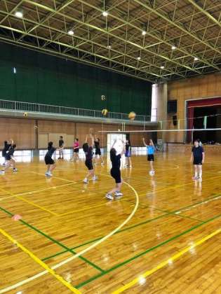 バレーボール部の練習です。顧問の先生の指導にも熱が入ります。