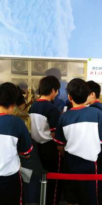 富士山レーダードームの5月の寒さ体験コーナーは、大人気です。