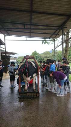 小林牧場でも乳絞り体験・餌やり体験を行いました。