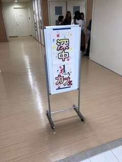 説明会は10時50分からです。隣ではPTAの保護者の方が「深中 1day カフェ」を開催しています。気軽にお茶を飲みにお越しください。