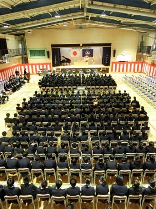 ご来賓のご祝辞と整然とした生徒の姿です。式典に臨む姿は、非常に立派でした。