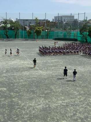 5月22日、第1回体育祭全体練習を行い、入場行進とラジオ体操を行いました。晴天のもとキビキビとした生徒の動きが眩しく見えました。