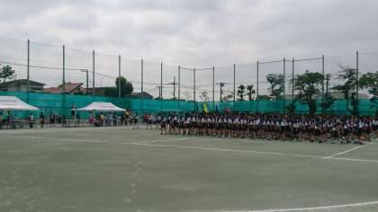 吹奏楽部の演奏に沿っての入場行進。今年度は生徒会役員の笛の指揮によって入場していきます。