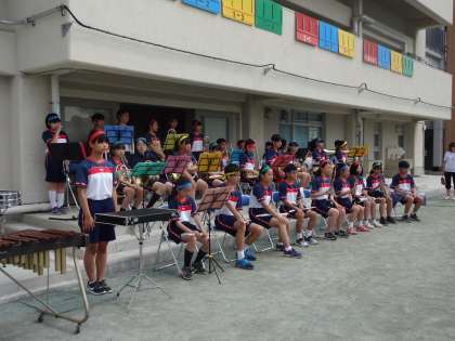 吹奏楽部のファンファーレと演奏で始まった体育祭開会式の様子です。