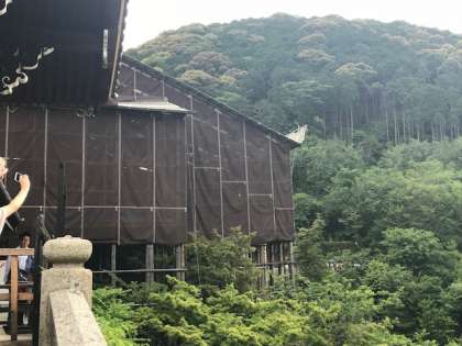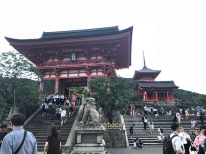 清水寺は工事中でしたがたくさん人がいて、班行動中の生徒何人かに会いました!みんなお土産をたくさん持っていました!