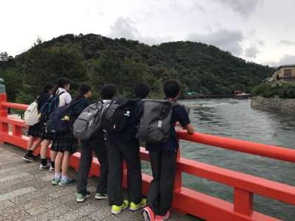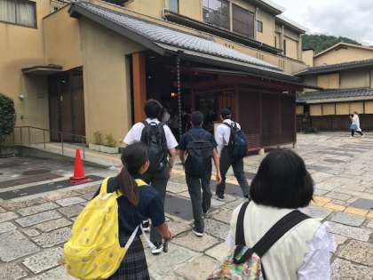 窓から宇治川が見える素敵なお部屋に生徒たちも興奮気味です。