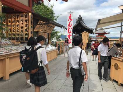 清水寺内にある地主神社(縁結びの神様)にて、班行動中の生徒と遭遇しました!