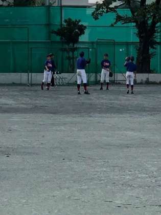 長かった夏休みもあと少しで終わりです。今日は野球部が世田谷中と梅丘中を迎えて練習試合です。