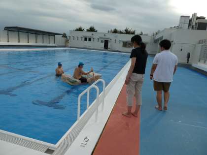 技術部がペットボトルを使っていかだ作りをしました。3ヶ月かけた大作です。プールに浮かべて乗ることはできましたが、何度か乗ると壊れてしまいました。また来年、バージョンアップしたいかだに期待です!